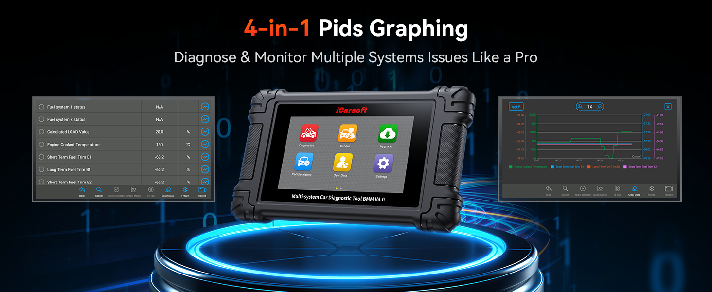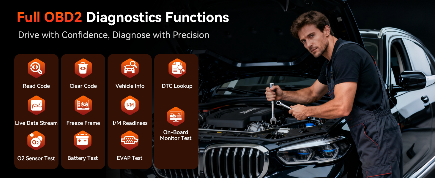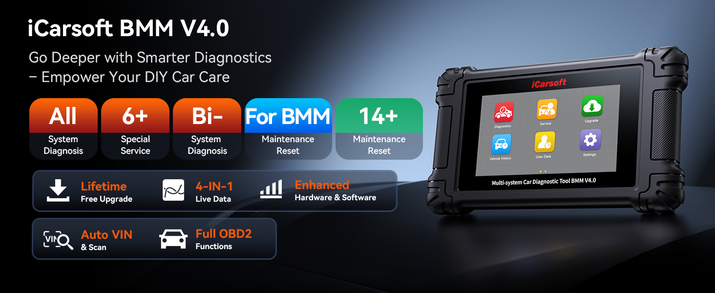 The iCarsoft BMM V4.0 is a professional diagnostic scanner designed for BMW and MINI vehicles. It offers comprehensive system diagnostics, including fault code reading and clearing, live data display, bi-directional tests, and advanced service functions such as oil reset, EPB, SAS calibration, DPF regeneration and more. Featuring automatic VIN recognition, a 5″ touchscreen, and lifetime free Wi-Fi updates, this tool delivers reliable and user-friendly diagnostics for both routine maintenance and complex troubleshooting.
