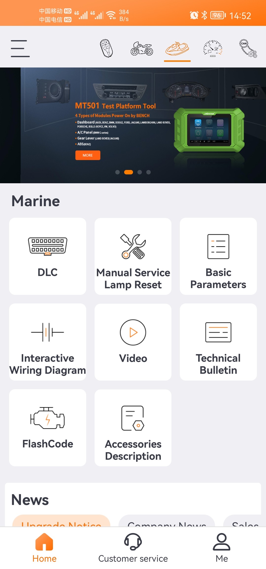 1. The OBDSTAR mobile APP integrates functions such as diag socket location, flash code query, technical bulletin, manual service function(service lamp reset), basic parameters, etc., working with D800 to make marine diagnosis more accurately and efficiently (some functions are only available for D800 users to check for free);