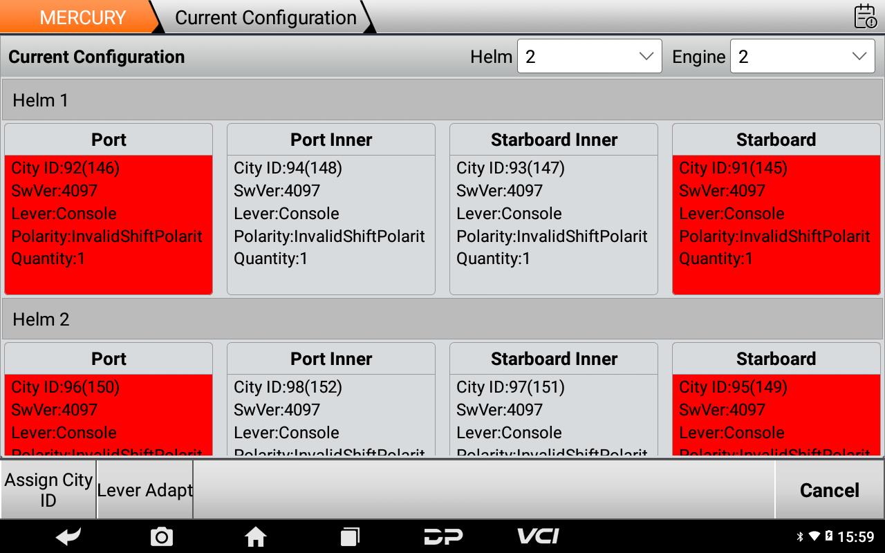 4. Auto Scan, Active Trim Configuration, Active Trim GPS Configuration, Auxiliary Joystick Configuration, BCM Simulator, Compass Configuration, Device Initialization, Drive Alignment, Helm Setup, Instance Setting, Maintenance Setting, Merc TDS Reset, Remote Control Reset, Set Engine Location, Set Tach Link, Set Tilt Limit, SMUX Configuration, Steering Wheel Centering, System Calibration, Torque Adjustment, Trackpad Configuration, Vessel Personality, and other functions.