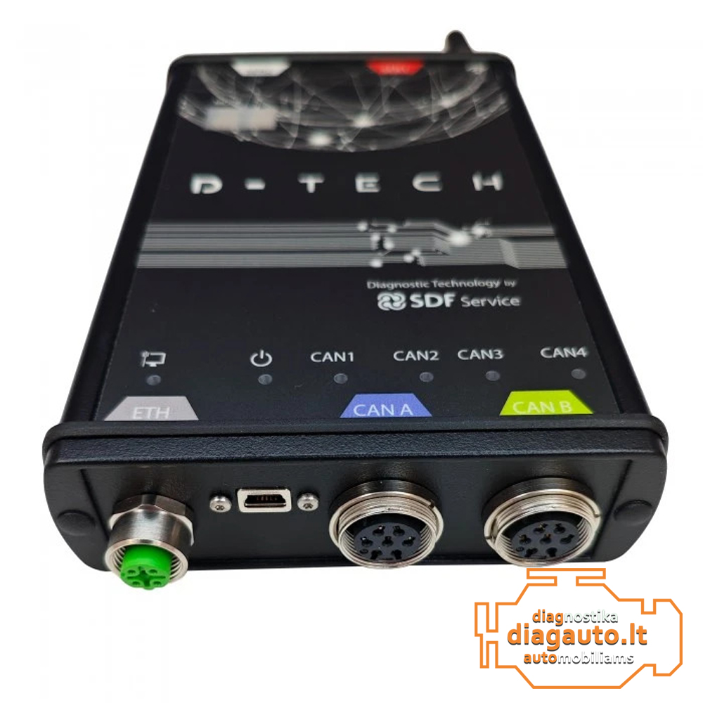 D-TECH yra originali SDF atstovybės diagnostinė sąsaja, palaikanti 4 x CAN ir K/L-Line protokolus. Ji visiškai suderinama su D-Tech diagnostine programine įranga ir suteikia stebėsenos bei diagnostikos funkcijas SDF gamybos technikai.